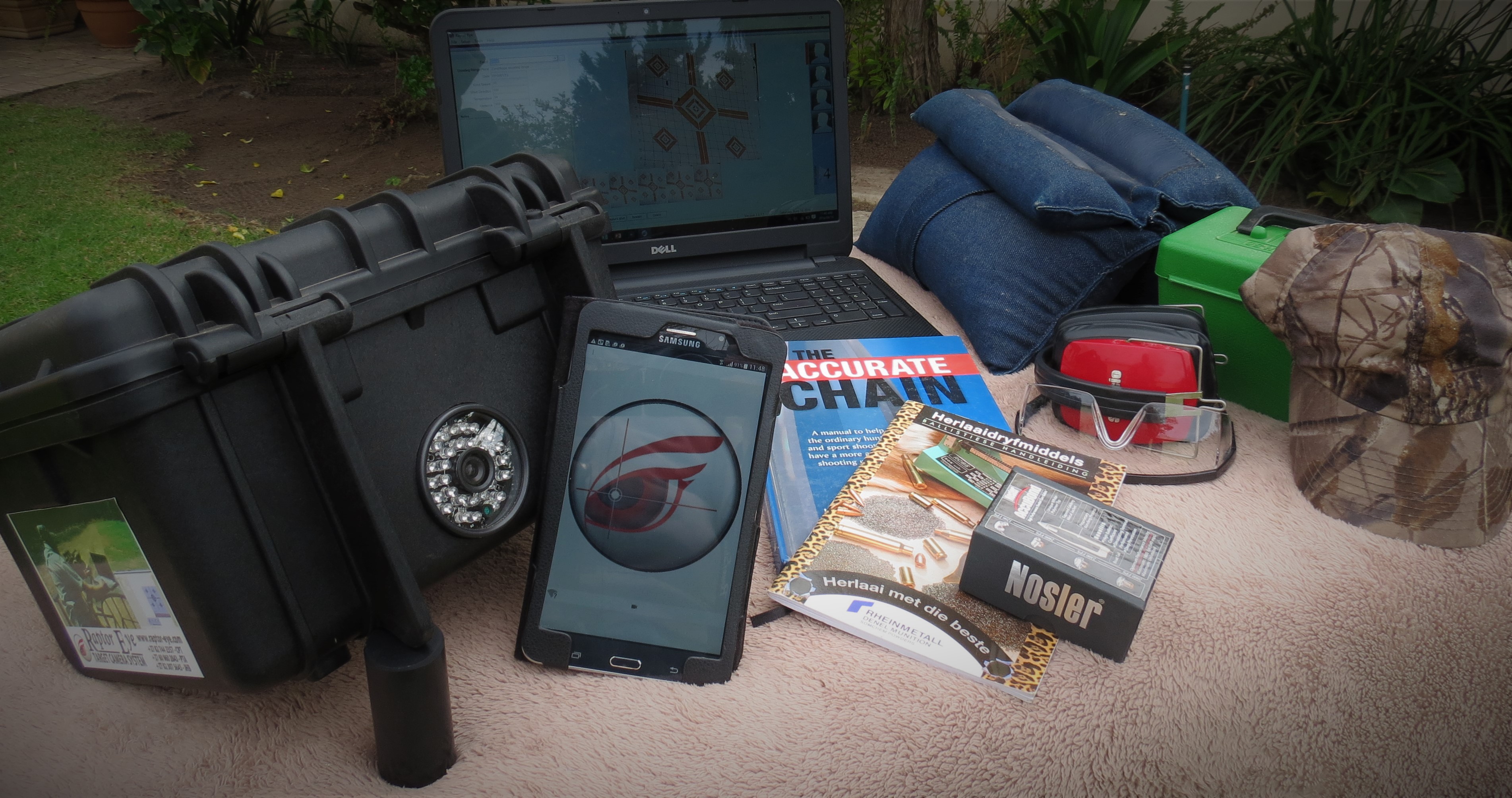 Our target camera is setup down range at your target and you can then view each and every shot fired to your target on your laptop or handheld device from your shooting station. No more walking up and down to view your shots. No more struggling to view your shots with a spotting scope. Saving you time and money. Each shot fired is indicated by a blinking indication where your last bullet has entered the target. Please vissit our website at www.raptor-eye.com for more details on our product.